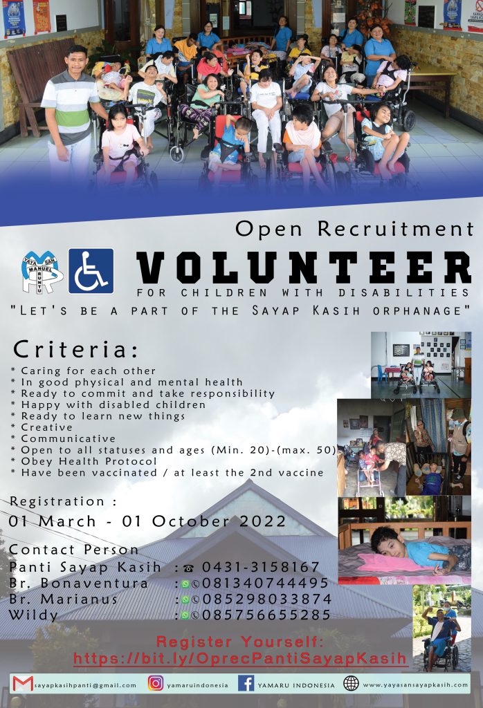 Before getting to know the Wings of Love orphanage, we first got to know the Manuel Runtu Foundation, which was founded by accident. Its activities were started in September 1985 by Br. Han Gerritse, CSD a missionary from the Netherlands. In 1993 a religious man returned to the Netherlands. Before he left he asked the founder of Yamaru to pay attention and help 10 disabled children who live around his house. Founder Yamaru accepted the request gladly and extended the attention and assistance to more than 400 children scattered throughout Minahasa. To help visit these children at their home, Br. Han received help from a lay leader, Mrs. Michelle Borsboom, who has the same concern for disabled children.